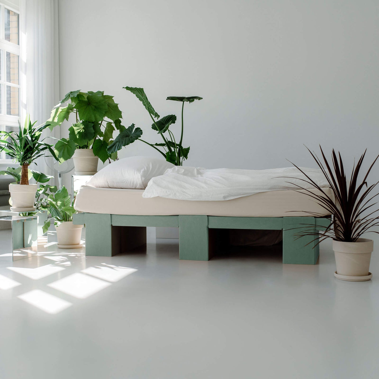 An excellent complement to our sustainable cardboard beds is our natural latex mattress. Generally, all mattress types except futons are compatible with our beds. However, make sure that the mattress is at least 15 cm high and medium-firm to firm.