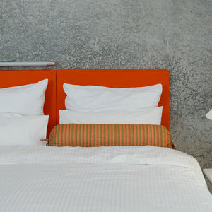 The headboard is made of 100% natural latex from FSC-certified cultivation. For the cover, we chose recycled PET because it's a sustainable and very durable material.