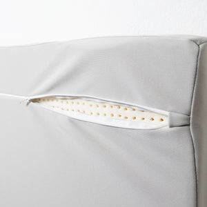 Sustainability meets comfort. The headboard, made of sustainable natural latex and a cover of recycled PET, elevates the comfort of your bed to the next level. It can be easily and securely attached to the wall using the eyelets on the back.