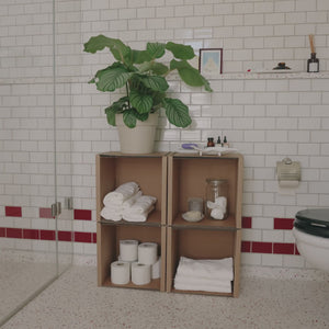 But can it hold at all? You bet it can! All the cardboard furniture you will find in our shop is made from one of the highest of corrugated cardboard qualities and is therefore extremely stable and durable. Each shelf module can be loaded with up to 10 kg. You can find more detailed information on this in the FAQ and of course in the Instructions.