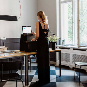 Sitting all the time not only has a negative impact on our health, but also on productivity. However, many office furnishings and especially home offices are not designed for working while standing. That's why we developed the MonKey Desk desk extension. The MonKey Desk transforms any desk into a standing desk in seconds and consists of a monitor desk and a separate keyboard desk. Just as quickly as it is set up, it can be taken down. When folded, the MonKey Desk can be stored in the storage box next to the desk to save space.