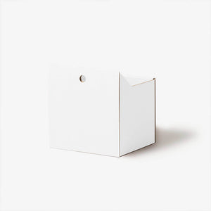 The drawer is made of heavy-duty cardboard of the highest quality, with a recycled content of 54 to 80 %. This makes it light and stable at the same time. The paper layers are bonded with a vegan glue made from corn starch and then finished with solvent-free water-based paints for the white, black and sage versions. The result is an environmentally friendly and ecologically sustainable product that can be completely recycled in the waste paper bin.
