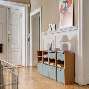 Wonderfully versatile: this 8-module shelf can cover a wide range of needs and is therefore our secret star among the shelves. It is ideally suited as an office shelf and helps you to organise your working environment even more clearly. It also cuts a fine figure as a sideboard, supplemented by drawers that can store all kinds of small items. In the open version, it offers plenty of space for your book collection and even grows with you if necessary. Choose one of our pre-configured versions or design your dream shelf yourself from any number of modules and inserts here.
