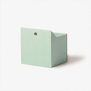 The drawer is made of heavy-duty cardboard of the highest quality, with a recycled content of 54 to 80 %. This makes it light and stable at the same time. The paper layers are bonded with a vegan glue made from corn starch and then finished with solvent-free water-based paints for the white, black and sage versions. The result is an environmentally friendly and ecologically sustainable product that can be completely recycled in the waste paper bin.